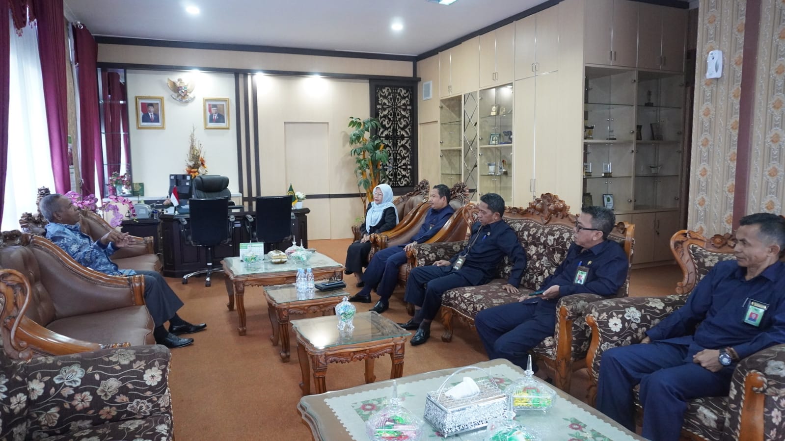 Pada hari Selasa (19/12), Ketua PA Padang Nursal, S.Ag., M.Sy. berkunjung ke PTA Padang sekitar pukul 14.00 Wib. Ia tidak seorang diri, tapi ditemani oleh Wakil Ketua Afrizal, S.Ag., M.Ag, Panitera Muhammad Rafki, S.H., dan Sekretaris Alisman, S.Ag. Kehadiran jajaran pimpinan PA Padang ini disambut oleh Ketua PTA Padang Dr. H. Abd. Hamid Pulungan, S.H., M.H. dan Wakil Ketua Hj. Rosliani, S.H., MA. bertempat di ruangan Ketua. “Apa kabar pak Ketua, semoga sehat dan sukses selalu,” ujar Ketua PTA Padang dalam menyambut kedatangan tamunya tersebut. “Alhamdulillah, sehat pak Ketua semoga juga sukses selalu,” ujar Ketua PA Padang dalam membalas sapaan Ketua PTA Padang tersebut.