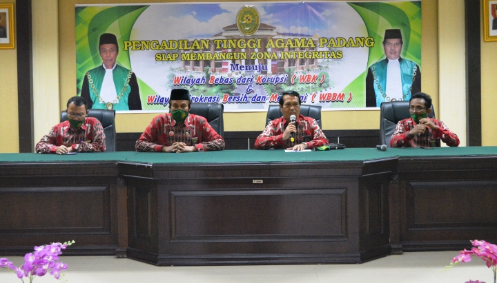 Padang, 1 Juli 2020 bertempat di aula Pengadilan Tinggi Agama Padang dilaksanakan kegiatan dalam rangka kesiapan Pembangunan Zona Integritas menuju WBK dan WBBM di Pengadilan Tinggi Agama Padang menggelar kegiatan monitoring dan evaluasi dan sekaligus meningkatkan semangat semua pegawai PTA Padang untuk siap membangun Zona Integritas di semua Area nya .