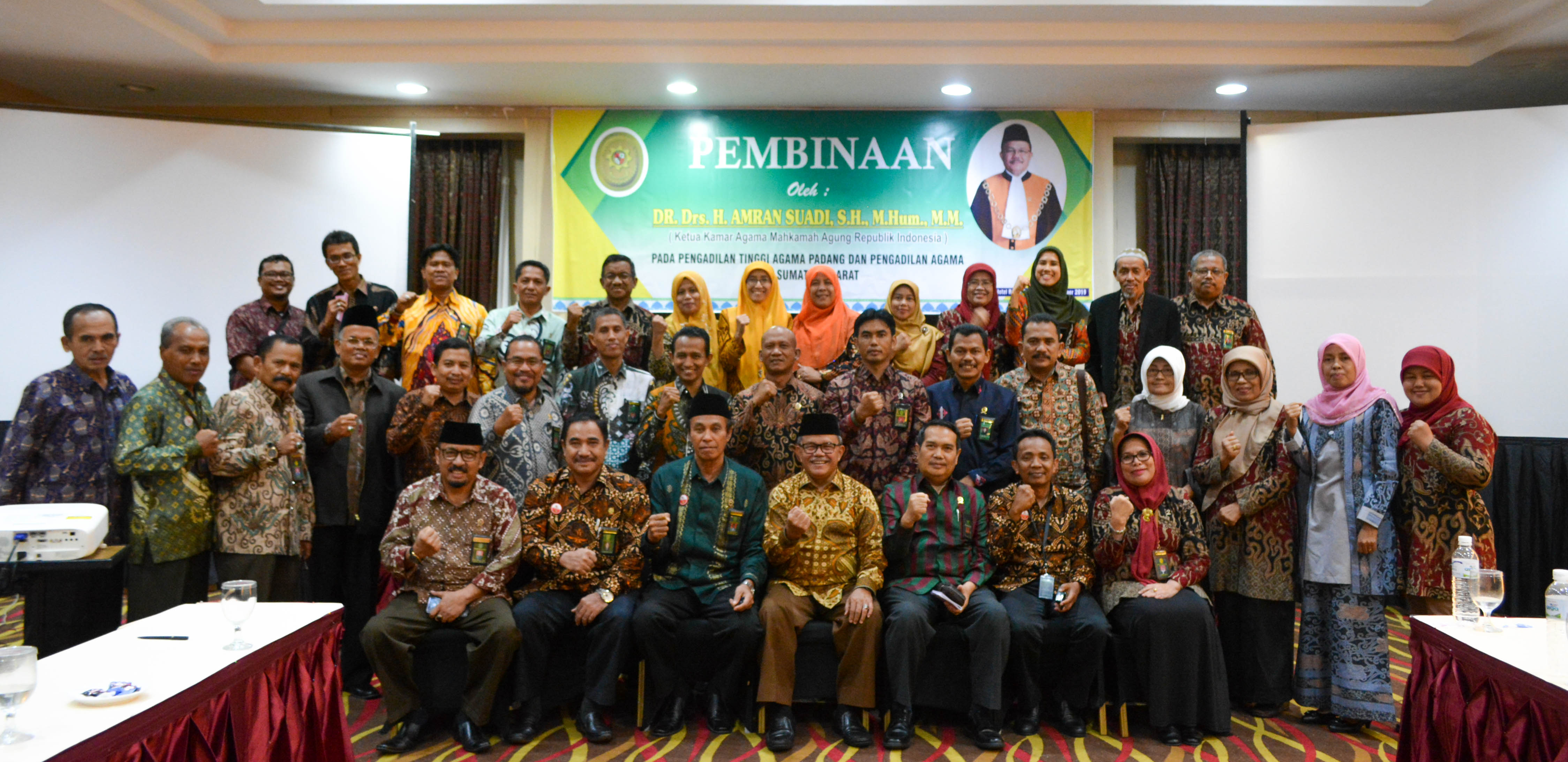 Bukittinggi , Ketua Kamar Agama Mahkamah Agung RI Dr. Drs. H. Amran Suadi. S.H., M.Hum., M.M. , memberikan pembinaan yang bertempat di Rocky Hotel Bukittinggi pada tanggal 25 Oktober 2019 yang diikuti oleh seluruh Ketua Pengadilan Agama se Sumatera Barat. Ketua Kamar Agama dalam pembinaannya menyampaikan bahwa tugas pokok Pengadilan adalah menerima, memeriksa, mengadili dan menyelesaikan perkara yang diajukan kepadanya, mengadili artinya memberikan keadilan. Keadilan adalah puncak dari hukum oleh karena keadilan dan hukum berada pada jalur vertikal, keadilan berada di atas sedangkan dibawahnya adalah hukum, kita memutus suatu perkara demi keadilan berdasarkan hukum.